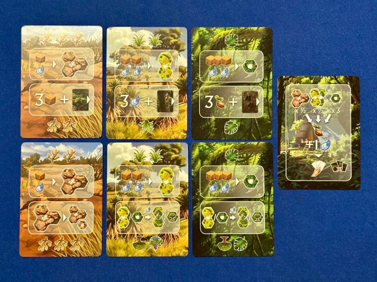 It would have been simple for the designer of the game to put the plants and predation effects in the main deck and only have one - but I appreciate the decision to have plants and predation always available like this. It makes the puzzle of how to put your biomes together much more strategic as you’re less subject to the whims of the market deck, and more able to pay attention to getting the correct plant for your strategy, and have the ability to time when to attract predators to your board.